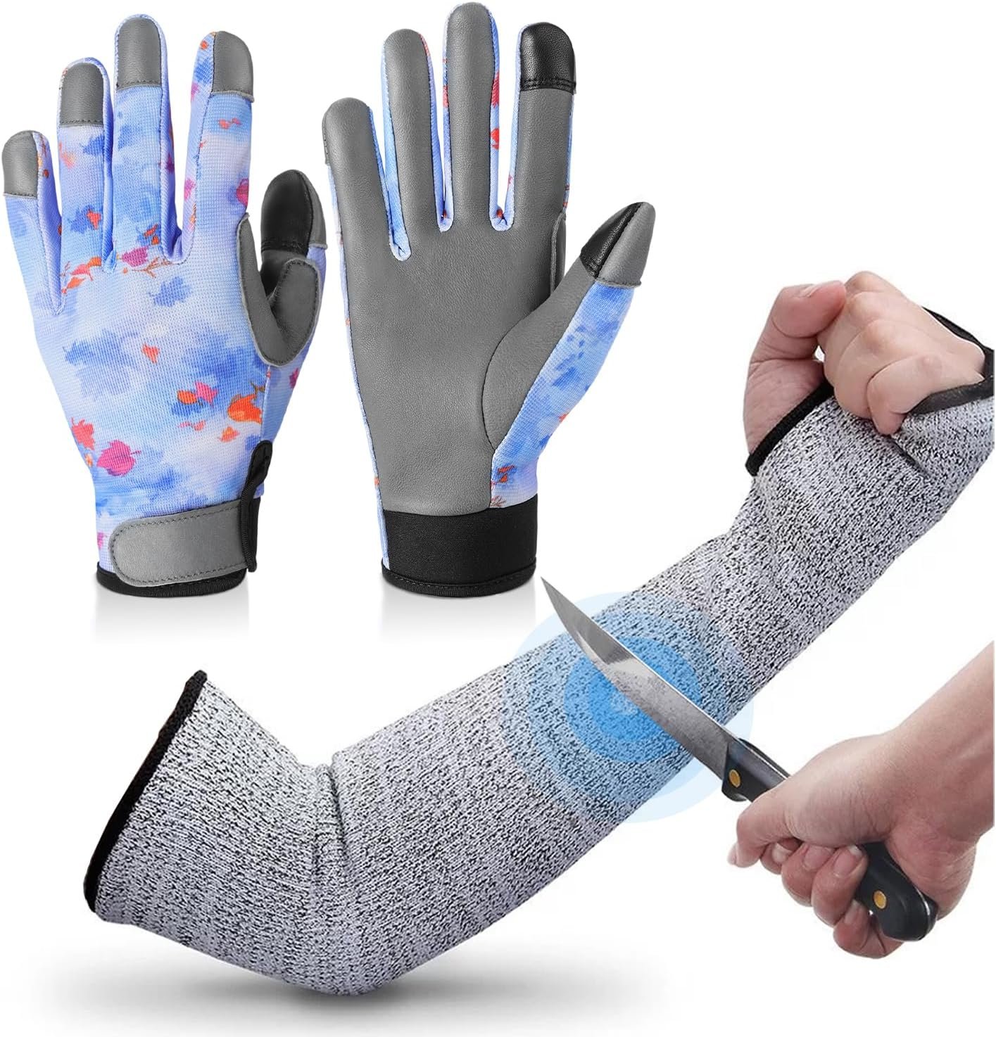 1 Pair Gardening Gloves for Thorn Proof & 1 Pair 18″ Arm Protection Sleeves