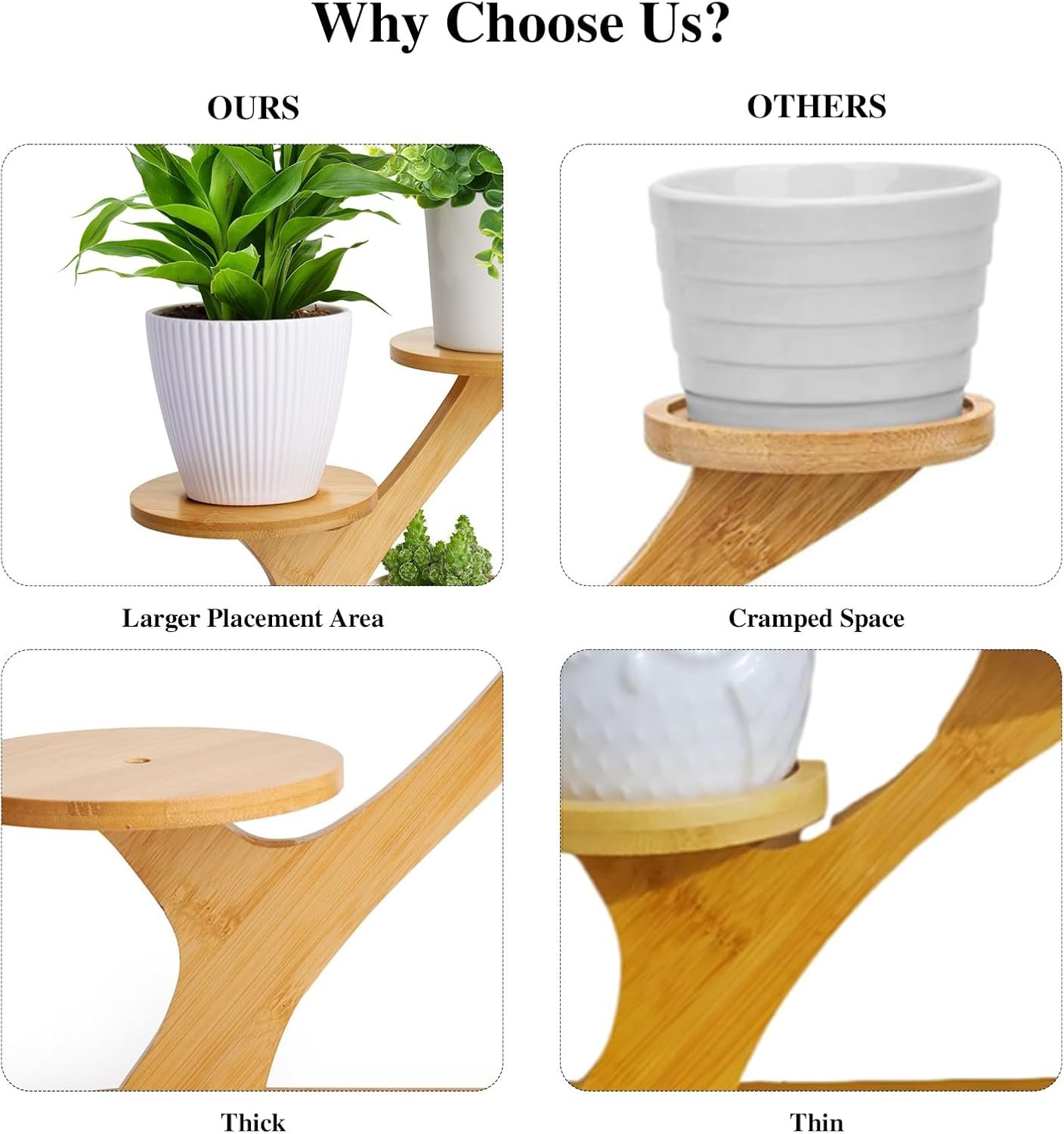 Special Design: Bamboo tray provided physical isolation between pot and household surface to catch excess water/soil.The increased design of the flower stand can be placed in larger flower pots or succulent pots, and the 3-tier ladder up design will give you a immaculate look, this plant stands indoor blends seamlessly with any home decor style, from minimalist to bohemian, adding a touch of sophistication and natural beauty wherever it is placed.