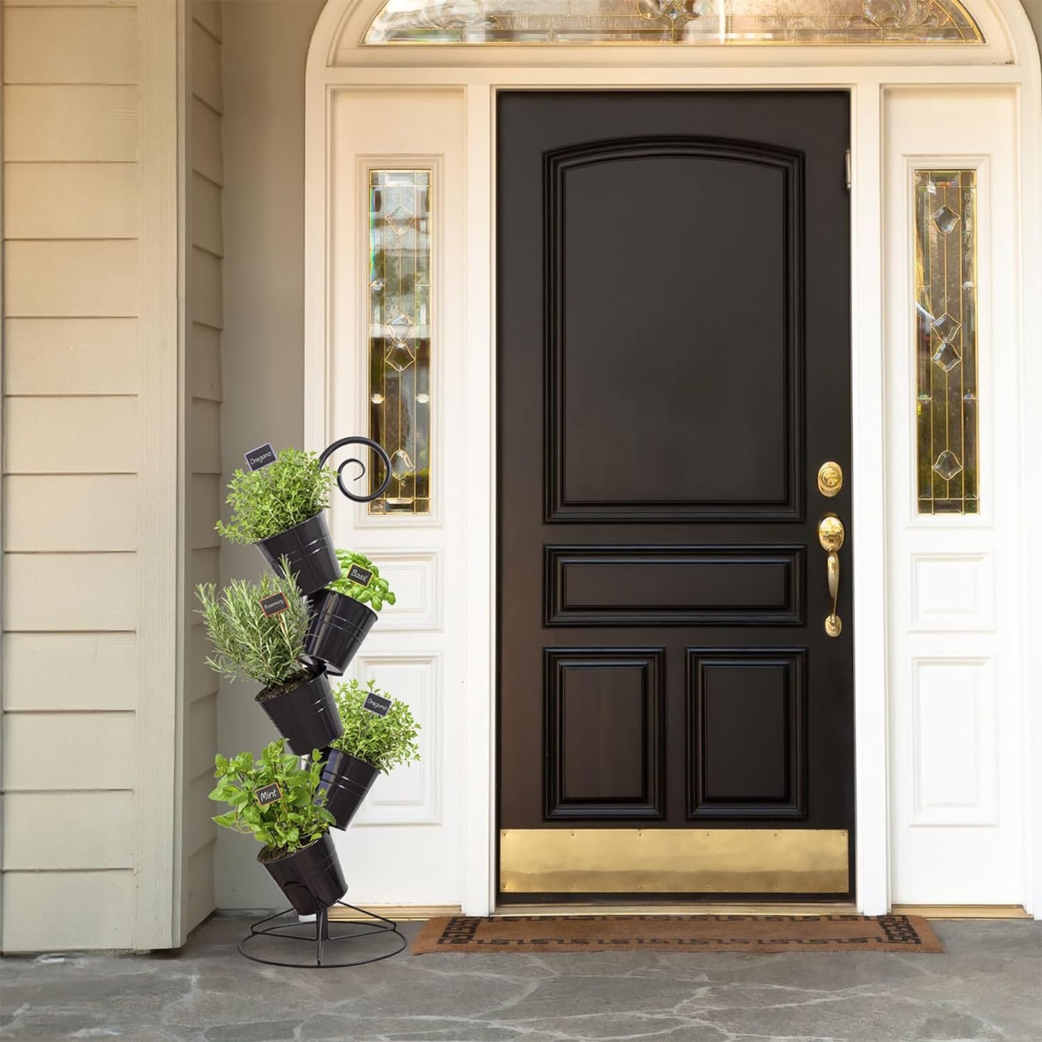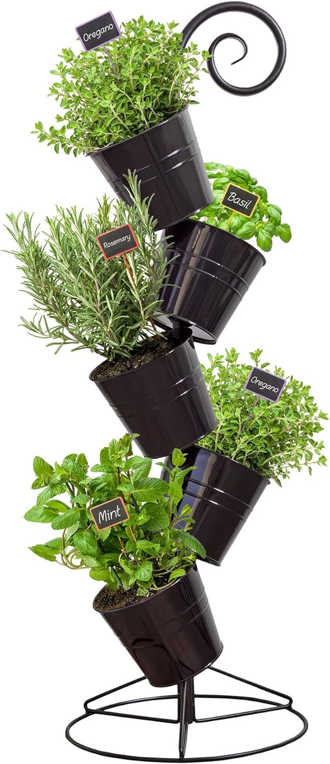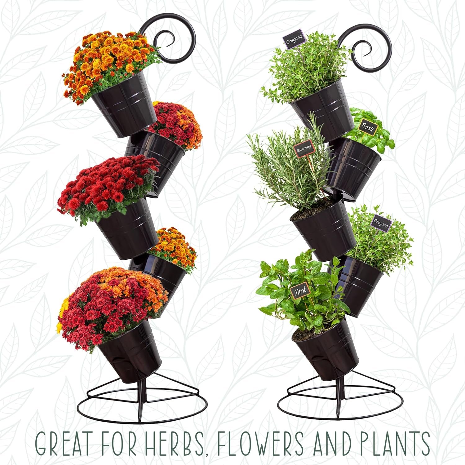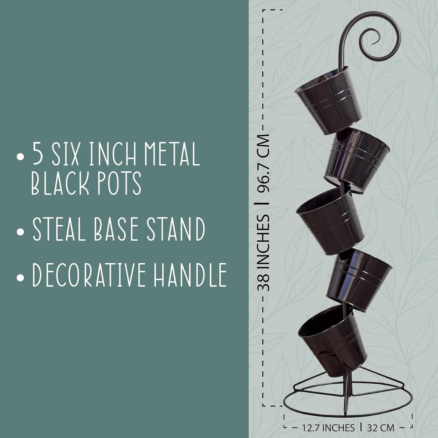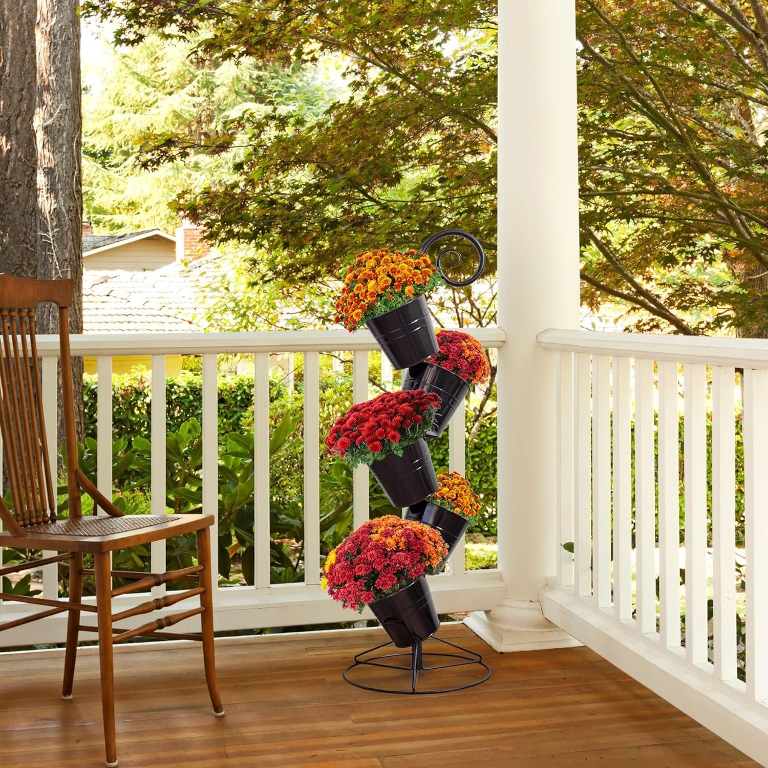 Esterno Hanging Flower Pot Tiered Stand (Black), Metal Outdoor Stacking Planter
