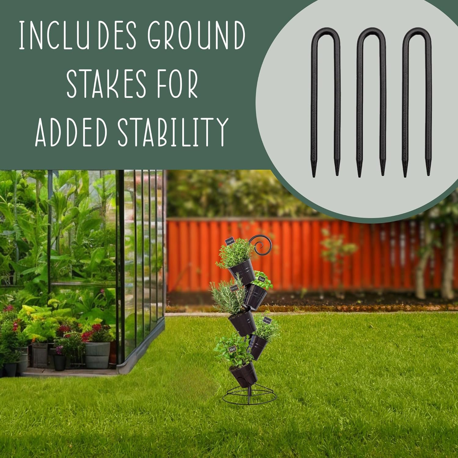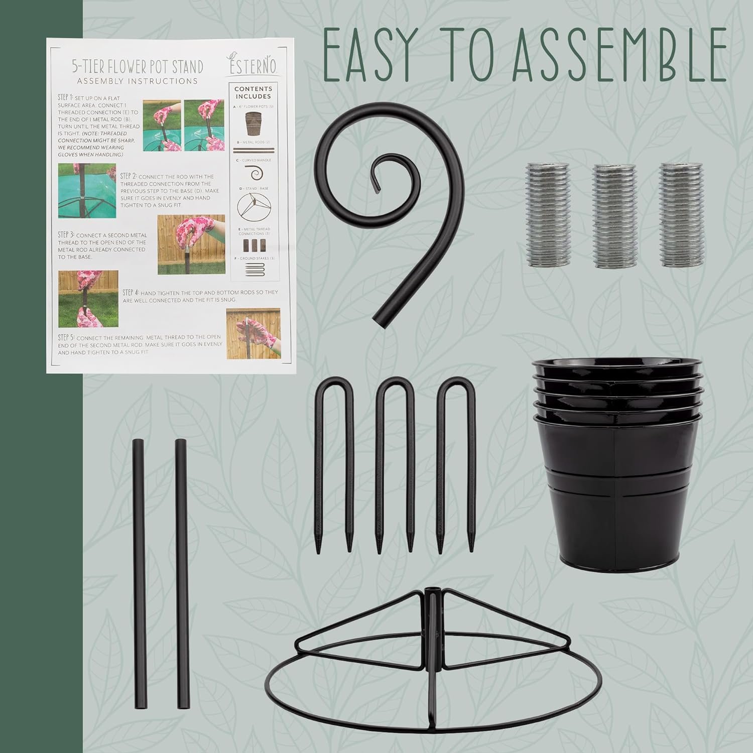 Includes: Display stand, 5 pots, ground stakes for lawn exploit, and easy-to-follow assembly instructions.