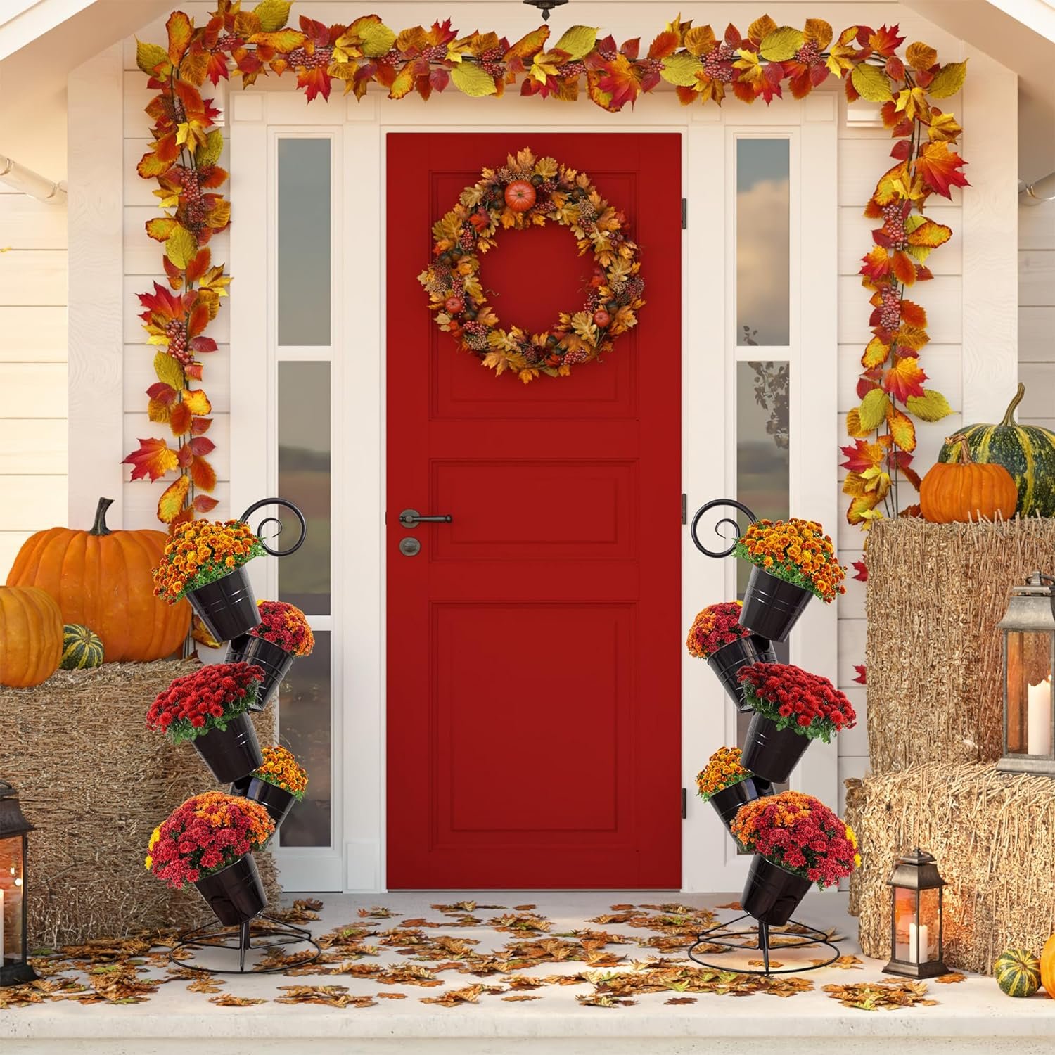 Tiered Flower Pot Stacking Stand with Set of 5 Pots Image of Flower Pot Stand on front porch, with white and pink flowers planted. Image of Flower Pot Stand on front porch, with white and pink flowers planted.