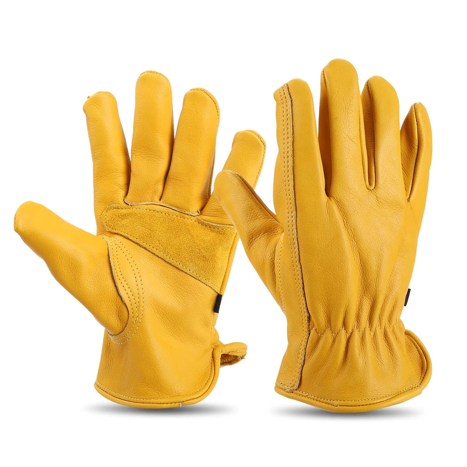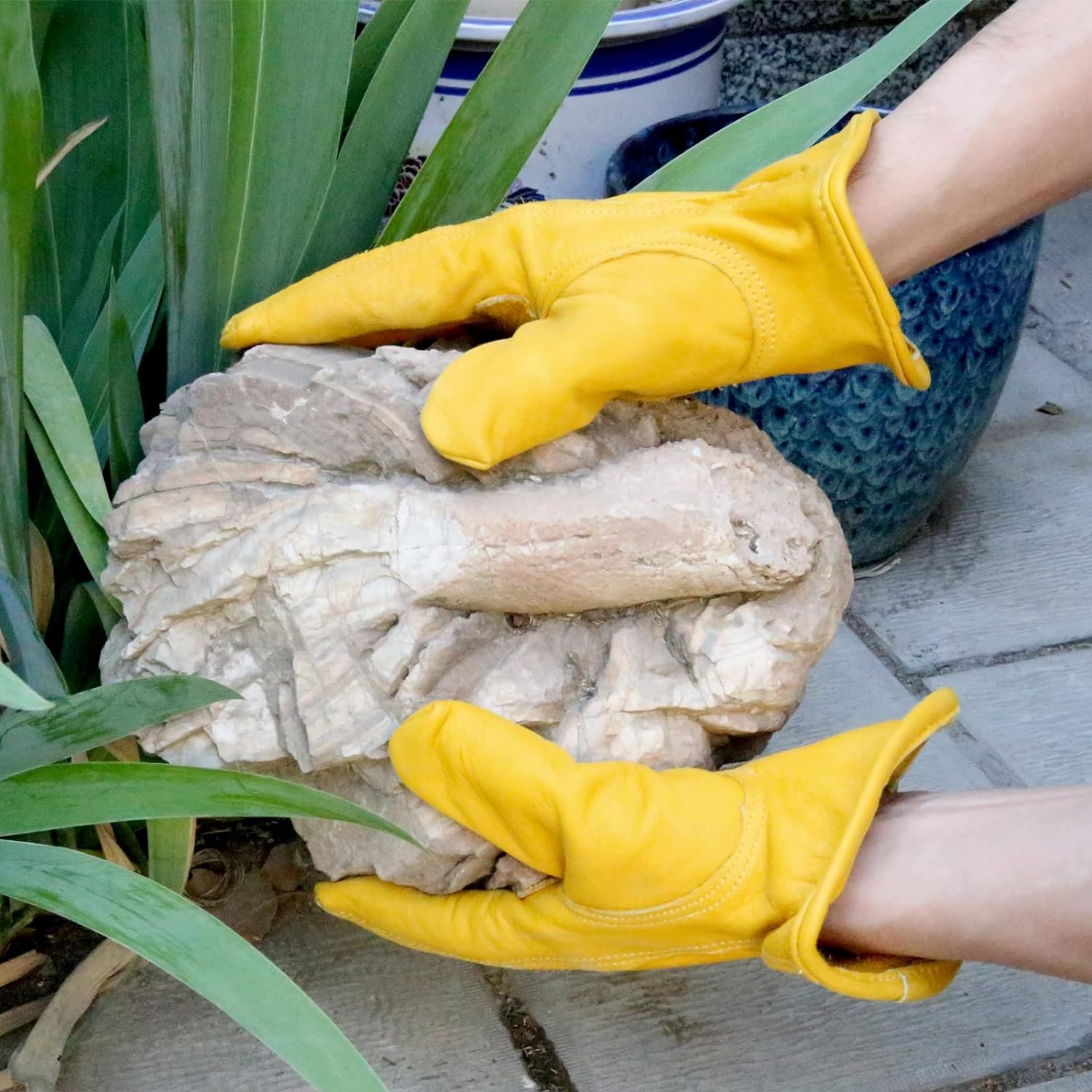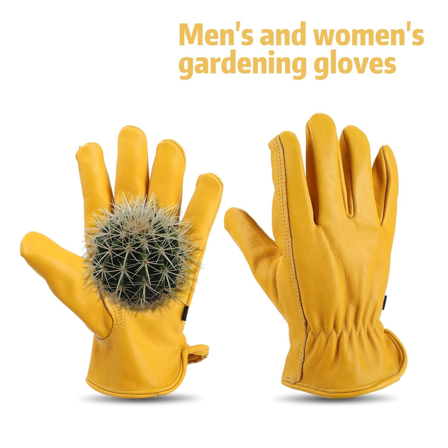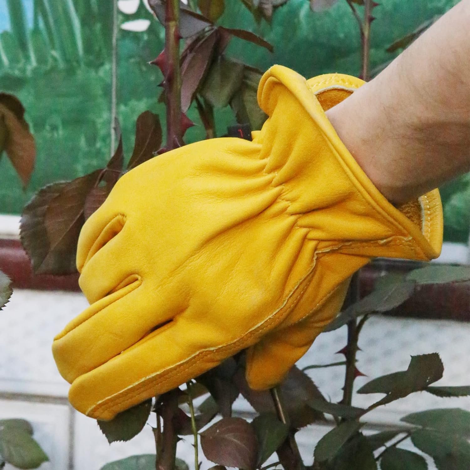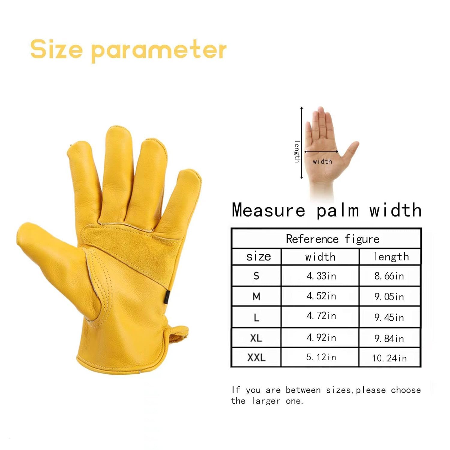 Real-grain cowhide, made of selected high-quality cowhide, with a thickness and depth of 1.0mm-1.2mm. It is not only stout and sturdy, but also has reinforced palms and elastic wrists, tenacity and excellent grip. -These leather work gloves have reinforced palm patches, which can provide you with excellent grip and wear resistance. The elastic wrist design prevents dust and debris from entering the inside of the Gardening Gloves gloves
