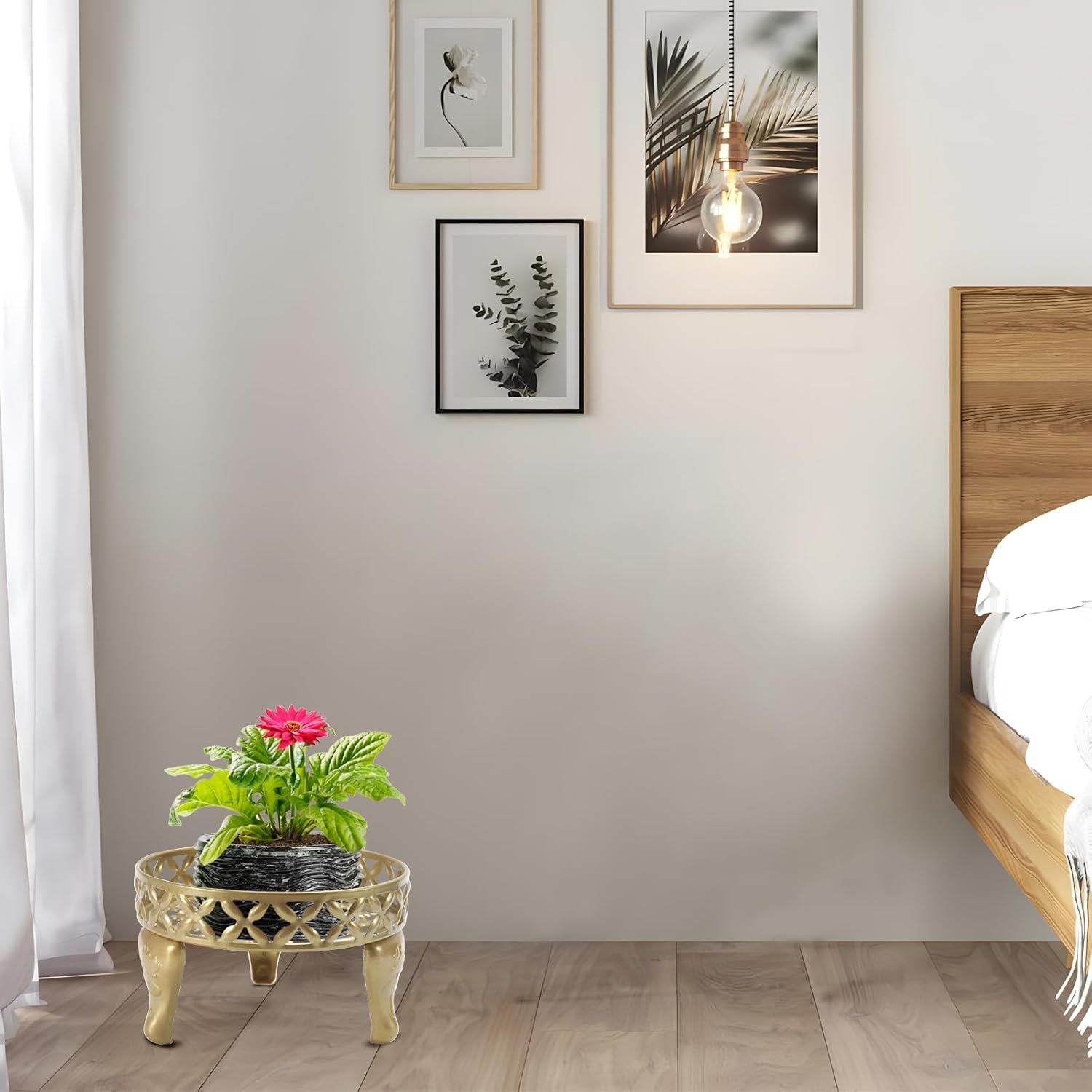 Raised Guardrail Design: Flower stands for indoor plants, the safe and sound raised guardrail around the top of the flowerpot to prevent the bottom of the flowerpot from tilting and sliding. The Wider and thicker support legs and lovely pattern design make it more practical and lovely