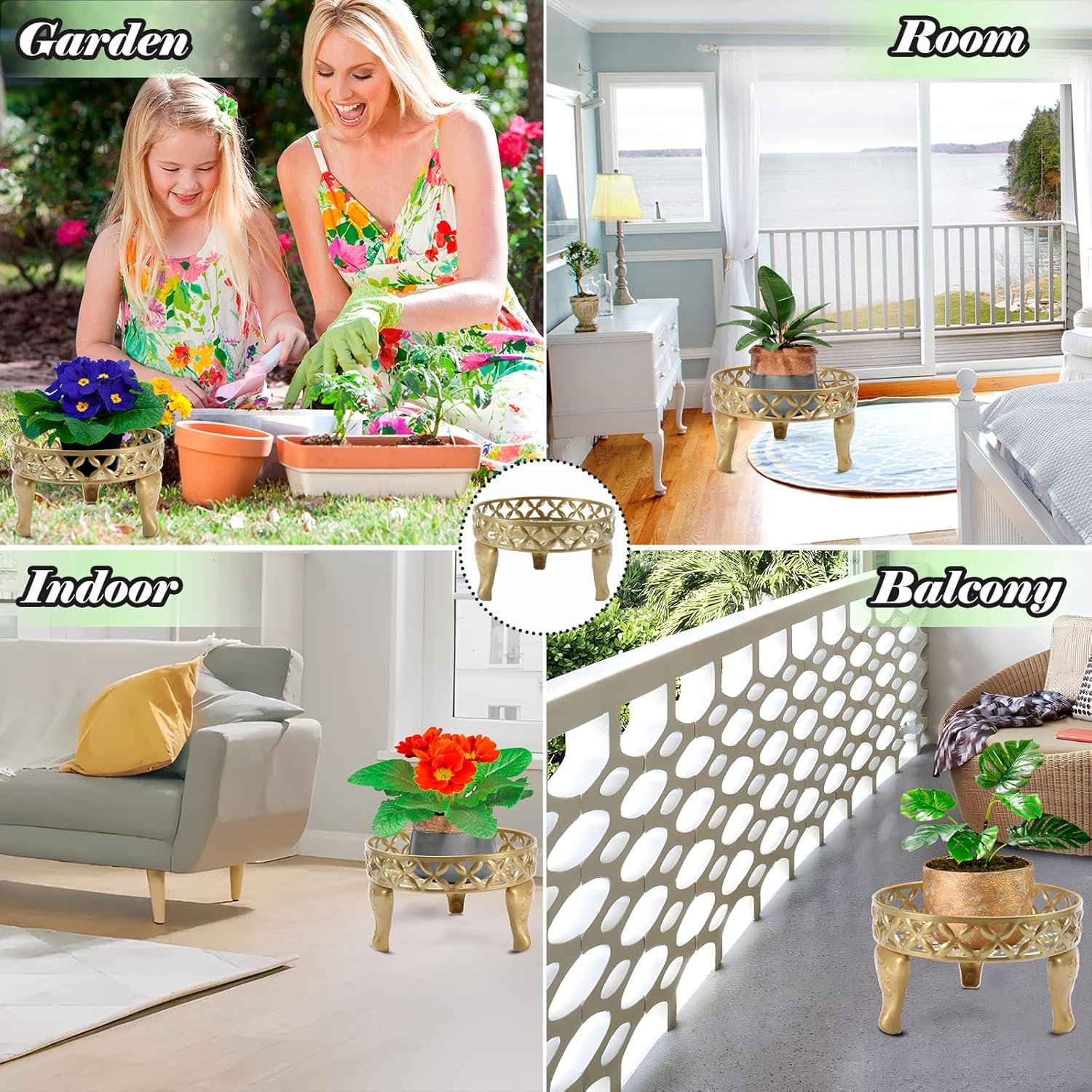 Multi-Purpose: Garden stand.Plate Diameter: 25 CM / 9.8″.Product Dimension: L:25 CM / 9.8″ * H:15 CM / 6″* W:25 CM / 9.8″. Ponderous duty plant stand suitable for most potted plants.Outdoor plant stands for patio,garden, balcony, courtyard, kitchen living room, apartment corner, coffee shop,company.Used to place pots for plants, pet snacks, fruit tray, picnics