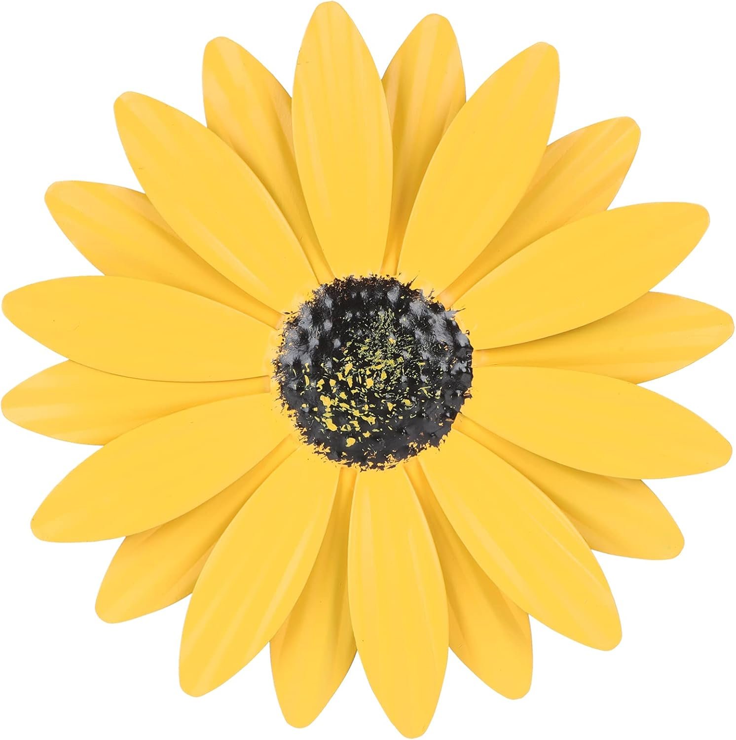 Metal Daisy Wall Art Inspirational Wall Sculptures Sunflower Hanging Figurine Wall Hanger Ornaments for Balcony Decor Yellow