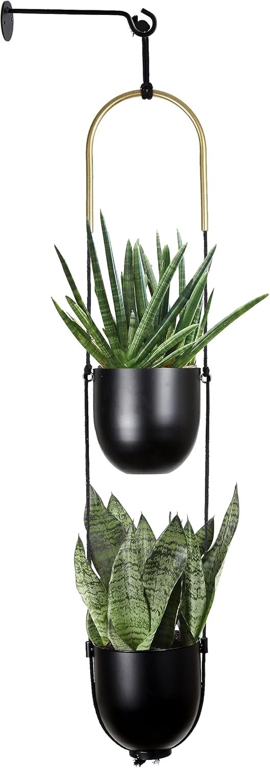 DOUBLE TIER DESIGN: Due to the 2 tier design, this hanging plant holder has 2 pots, so that you can plant 2 different plants or flowers. It can be hung by indoor windows, doorways, or on outdoor balconies and terraces. With its prosperous texture and sturdy design, this hanging flower pot is not only a great way to enjoy green plants but also a lovely indoor and outdoor decoration.
