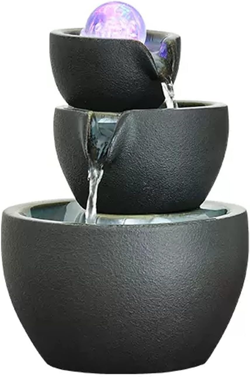 Indoor Petite Fountain with Rolling Balls with LED Colored Lights, As the water flows, the indoor fountain shines with colorful lights, which can add beauty to your room.
