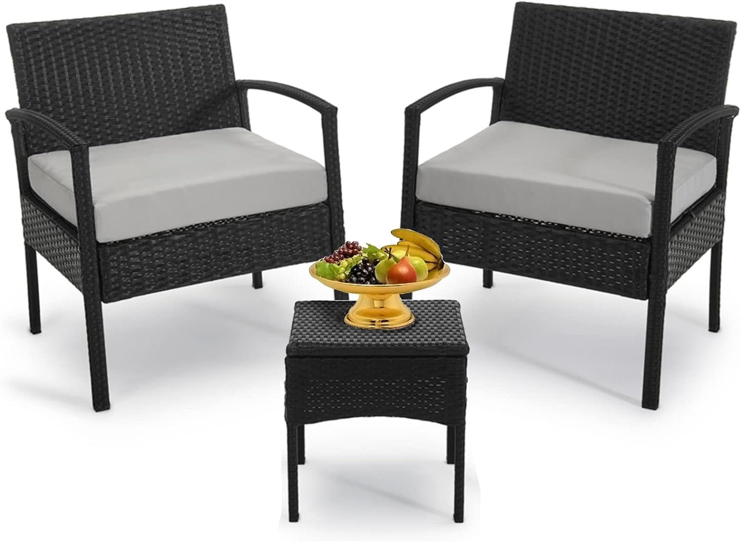 Robust Frame: This patio chairs is made of exllent black PE rattan and robust steel frame, which is weather-resistant for long time utilize. This patio seating features a good load-bearing capacity and hardly deforms for outdoor utilize.