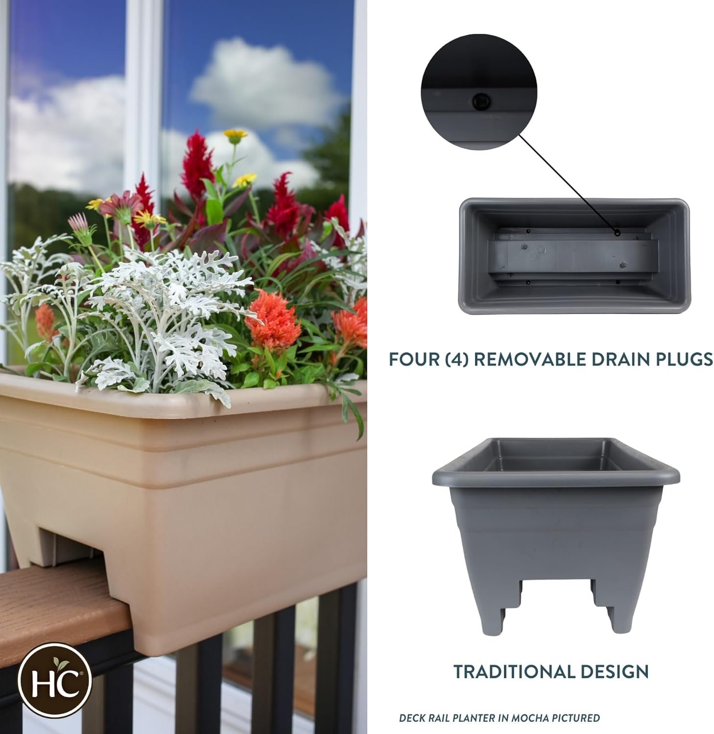 DIMENSIONS- 24″L X 12″W X 9″H Deck Rail Box Planter for Outdoor Railing, Fits 4″ or 6″ Deck Rails